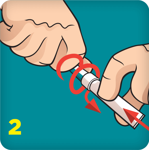 Para abrir el producto por primera vez, toma el conjunto pico-tapa y enroscalo completamente al pomo hasta perforar la membrana.